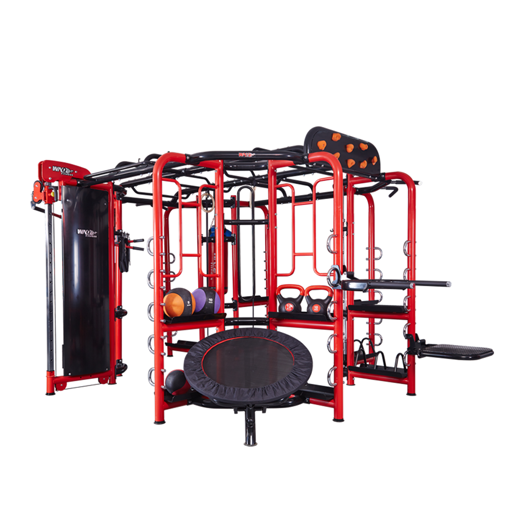 可最少提供15人同时练习,20种以上的练习方式,以下只列出一些常用的练习项目:弹力球运动、双杆、甩绳、单杆引体向上、拉力练习、二头肌运动、深蹲训练、平拉训练、沙袋拳击、踏板运动、吊绳、单边举重杆、攀岩训练、天梯攀爬、敏捷梯、吊环、壶铃等